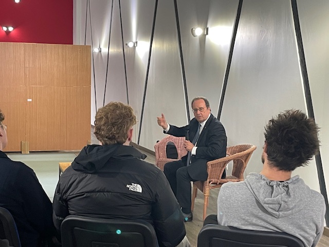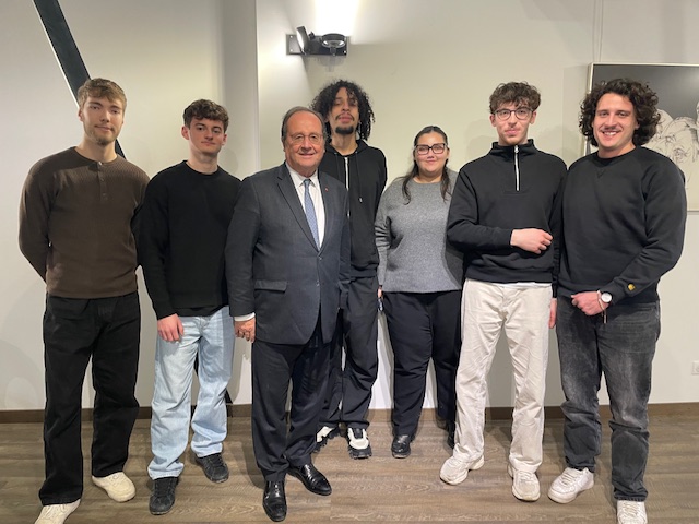Le jeudi 8 janvier 2026, les élèves de l'option entrepreneuriat de BTS MCO 1 et tous les élèves de la classe de BTS MCO2 ont échangé sur l'Europe avec l'ancien Président de la République, François Hollande, à l'occasion de la commémoration des 30 ans de la disparition de l'ancien Président François Mitterrand.